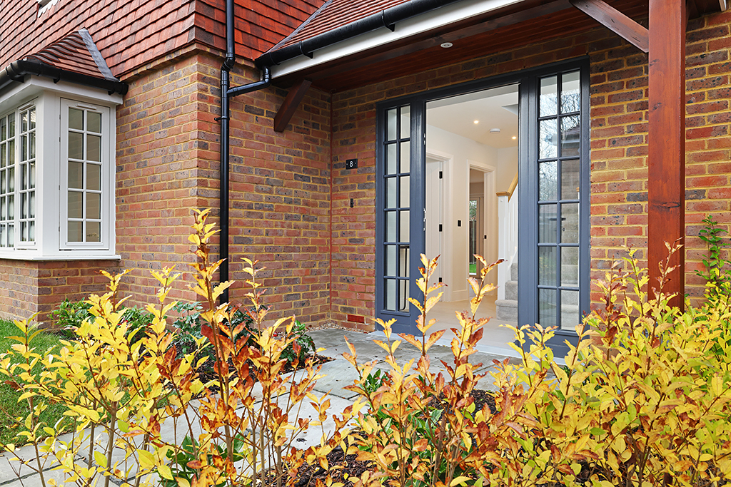 The 25’2 open-plan kitchen and dining space flows into the living area through elegant Crittall-style glazed doors, with bi-fold doors opening onto a private terrace and easy-to-maintain garden.