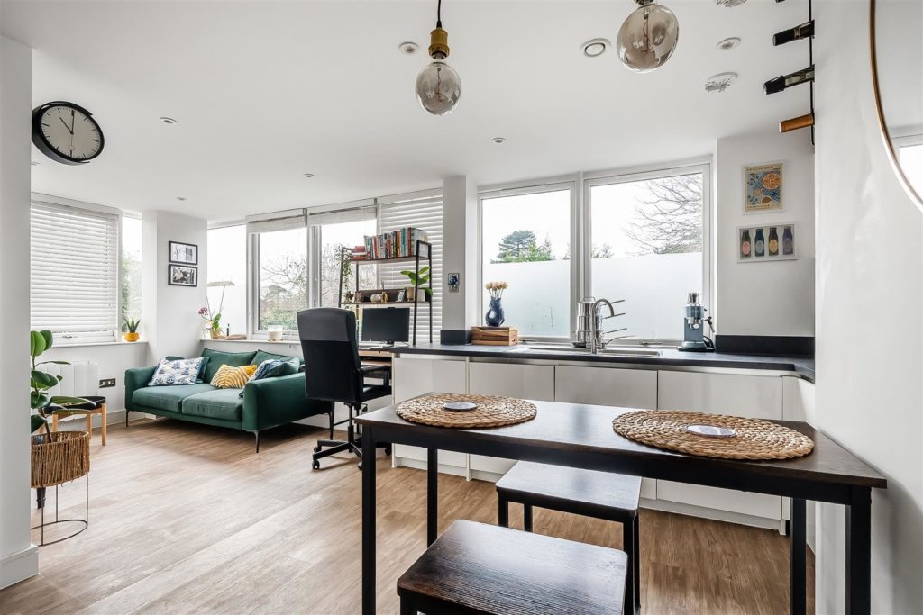 This stylish one bedroom first floor executive conversion apartment is offered in superb condition throughout. The modern and well-proportioned accommodation features a contemporary open-plan kitchen with ample space to dine, study/work and relax, bathroom, secure entry, lift access and communal patio area to the rear. This apartment benefits from its' own car parking space and a great central location in the heart of the village, which offers easy access to independent retailers and mainline station. Conveniently, this property is offered with no on-going chain.