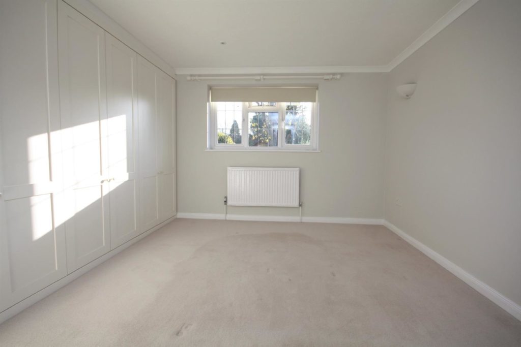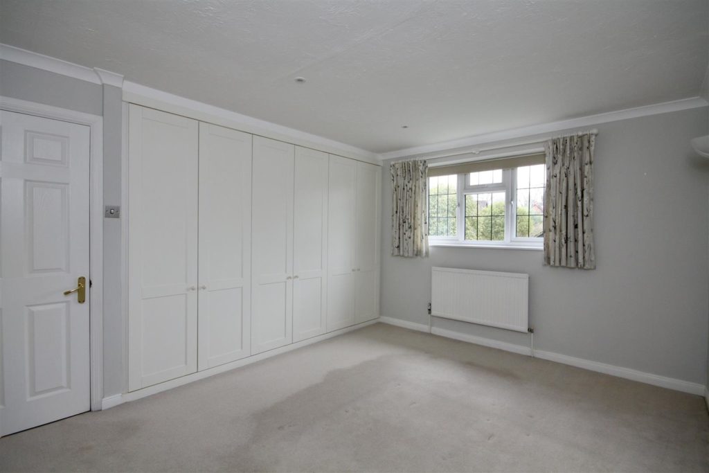 Spacious double bedroom with fitted wardrobes, neutral décor and carpet. Lovely rear garden aspect.