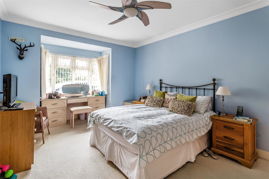 Double bedroom with bay window to the front of the property and a door leading to the patio.