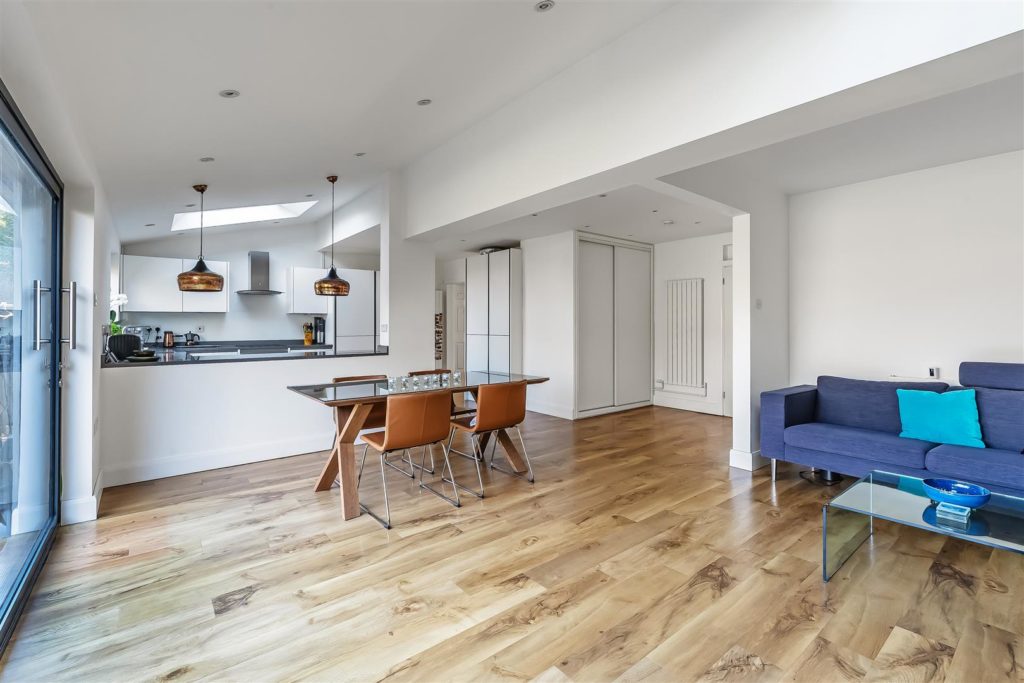 This extended family home features a modern kitchen/dining/family room with bi-fold doors to the patio and inviting garden beyond. There are also 3 reception spaces, four bedrooms, two bathrooms, parking and a beautiful family garden. Ideal for growing families all within a desirable, convenient location for both schooling and commuting into London.