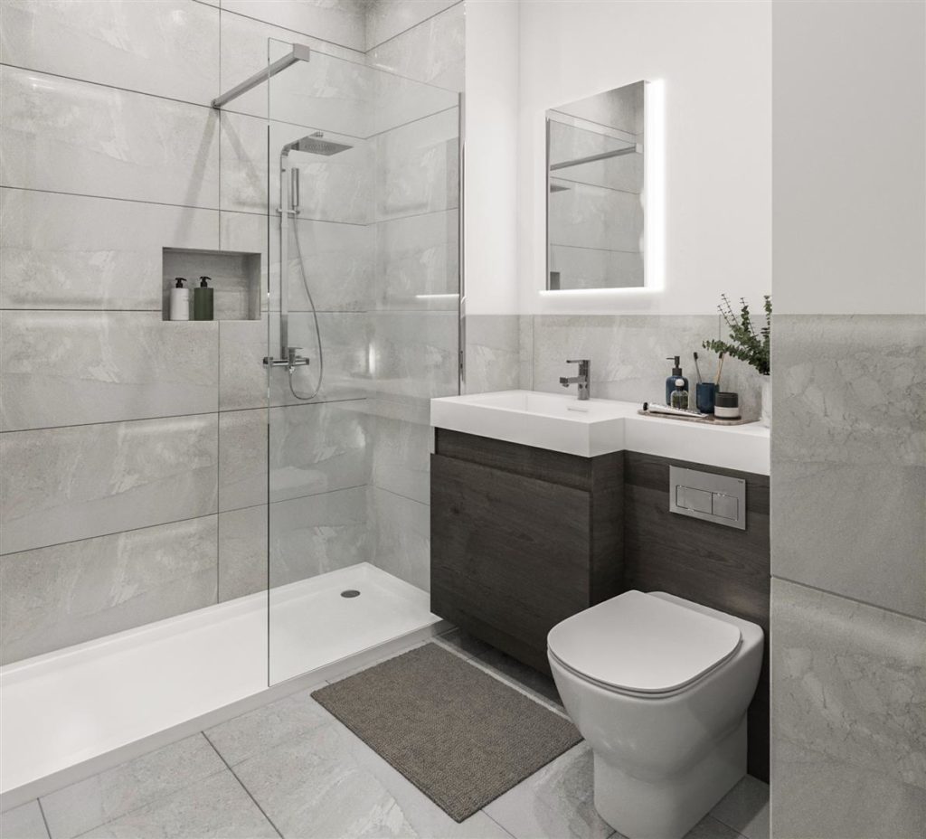Apartment 1, a GROUND FLOOR one bedroom property with private garden presents an inviting open living/kitchen and dining area. Sunlight streams in through the large windows, creating a warm and welcoming ambiance. The L shaped, modern kitchen showcases wooden effect flooring, good worktop space, and cabinet storage, ensuring a delightful cooking and entertainment experience. The entrance hall features a spacious double utility cupboard, providing ample storage space. The bedroom has luxurious fitted carpets, as well as a separate shower room for added convenience. Step out onto the private patio and enjoy your morning coffee. Next to the garden, there is a private parking space with an electric vehicle charging point nearby. Enjoy the convenience of a 10-year Advantage Build Warranty and Video Entry System.*Internal images taken from Show Home (No. 2)