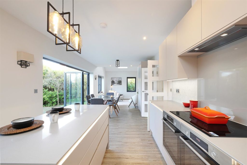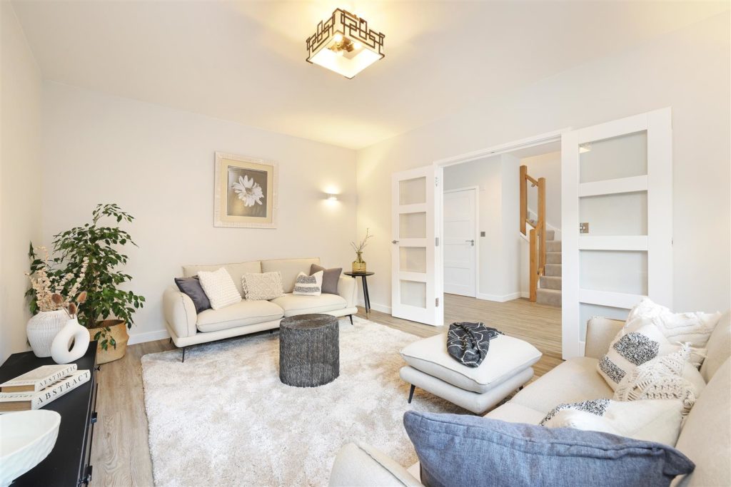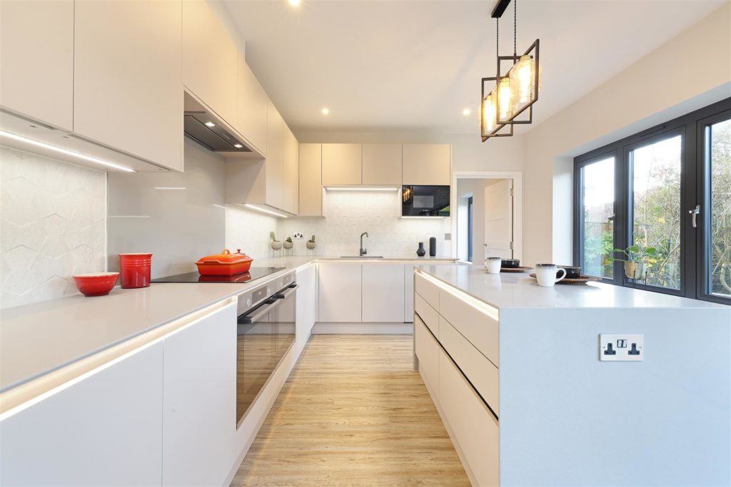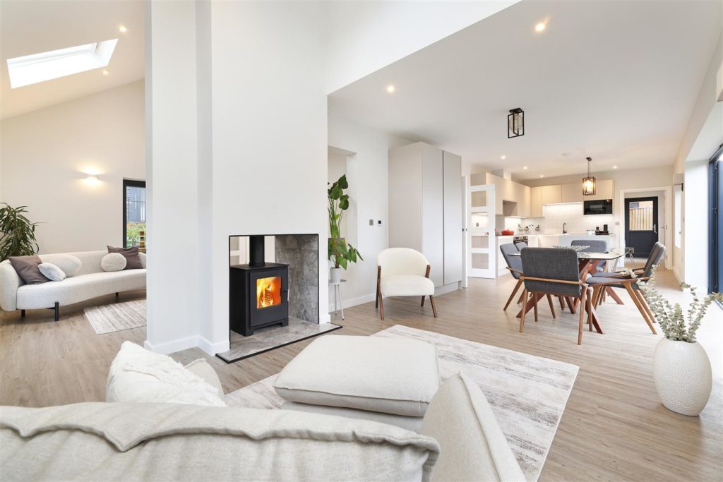 Introducing Chartland Close — an exclusive collection of just ten individually designed homes in the heart of Great Bookham. Each home showcases exceptional craftsmanship, with striking high ceilings and a premium specification throughout.6 Chartland Close is a stunning four-bedroom detached home, featuring an impressive 36’ open-plan kitchen/breakfast room. The contemporary kitchen, designed by Valmora, includes soft-close, handleless units, a Quartz work surface, textured porcelain tiled workstands, and Bosch integrated appliances. Glazed bi-fold doors off the kitchen, frame the garden perfectly, creating a seamless connection between indoor and outdoor spaces. The spacious kitchen flows into the dining room with a dual aspect fireplace feature. A separate living room off the large entrance hall completes the ground floor. The utility room is off the kitchen and provides side access into the house. A beautiful oak and glass staircase leads to four bedrooms. The principal bedroom and bedroom two each have an ensuite bathroom, complete with shower, vanity units and mirrored cabinets. The main bathroom serves bedrooms three and four, featuring full-height textured tiles, and carefully curated Grohe and Vado fixtures and fittings. High levels of insulation, an air source heat pump, wet underfloor heating on the ground floor, and central heating on the first floor ensure optimum energy efficiency.The home is complete with garage, private parking, an EV charging point, and a beautifully landscaped rear garden with an Indian sandstone patio.*Images furnished and staged for illustrative purposes only.