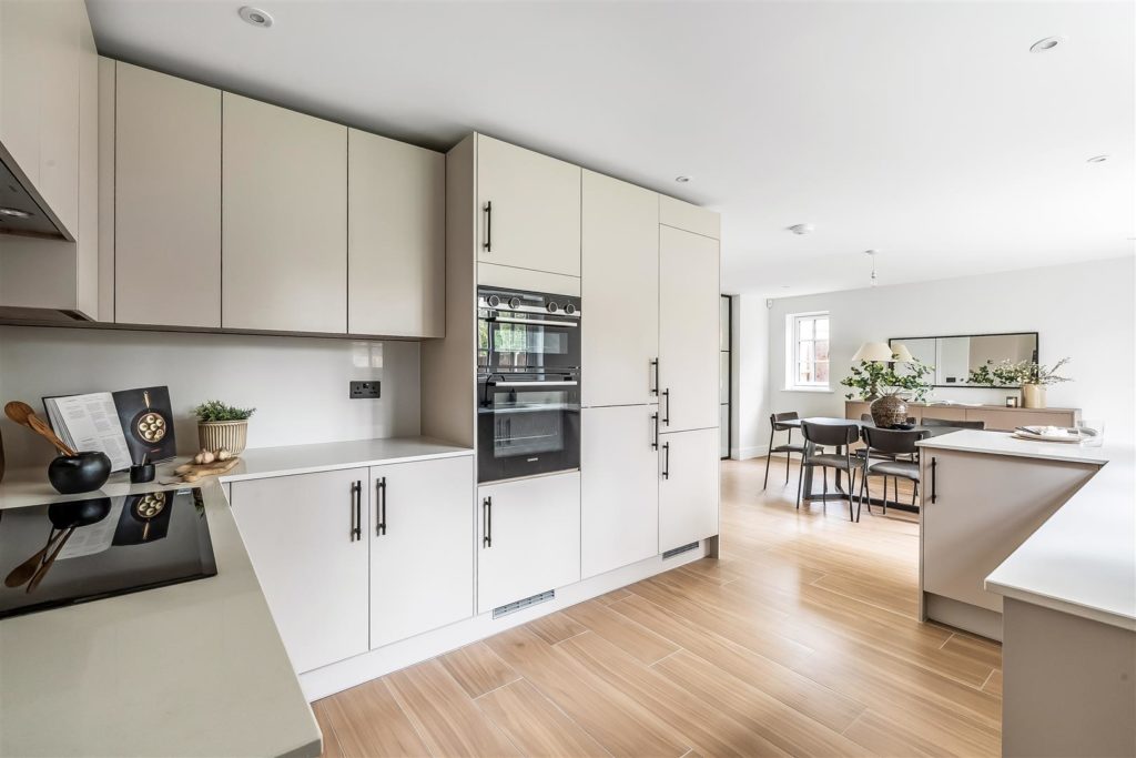AVAILABLE NOW! A stunning four-bedroom, detached luxury home by Ashgrove Homes, located in the desirable village of Effingham. This exclusive property offers proximity to top-rated state and private schools, making it ideal for families. The home offers generous space throughout, four bedrooms, storage and a luxury specification to boot. A 25'2 open-plan kitchen, dining and living area seamlessly extends to an external terrace and lawn garden through sleek bifold doors providing a picturesque view. The modern kitchen boasts contemporary units, stone worktops, and high-quality Siemens appliances. A convenient utility room with direct access to the integral garage makes everyday tasks a breeze. A spacious living room with feature bay window can be found at the front of the property.Upstairs, four bedrooms include two with en suite bathrooms, and fitted wardrobes in three, ensuring comfort and privacy. Energy efficiency is a highlight, with underfloor heating on both floors powered by a heat pump, and energy-efficient appliances and insulation reducing running costs. The integral garage, with an electrically operated door and ample parking space, also features an EV charging point for added convenience. Enjoy added peace of mind with an ICW 10-year build warranty.