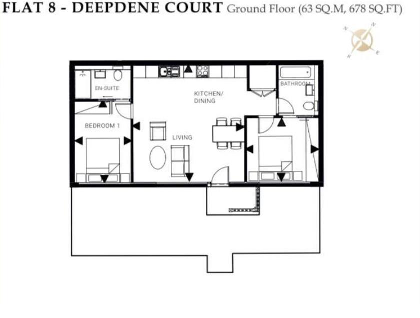 Nestled within the prestigious grounds of a Grade II listed park and gardens, this exquisite ground floor two-bedroom, two bathroom apartment offers breath taking views of the surrounding woodland. FLAT 8 has an open-plan kitchen, dining, and living area and benefits from a it's own terrace. The contemporary, individually designed kitchen is a masterpiece of elegance, boasting integrated appliances, Silestone Quartz worktops, and sleek handleless cupboards. The main living area is adorned with luxurious Sicilian Oak engineered wood flooring, while the bathroom is a sanctuary of style with its porcelain tiles, polished chrome fittings, heated chrome towel rail, and chic fitted vanity unit. Both double bedrooms are generously sized, carpeted for comfort making this apartment a perfect blend of luxury and tranquility.Outside, enjoy your own terraces area surrounded by the beautifully maintained communal gardens and serene woodland. Two parking spaces and visitor parking.