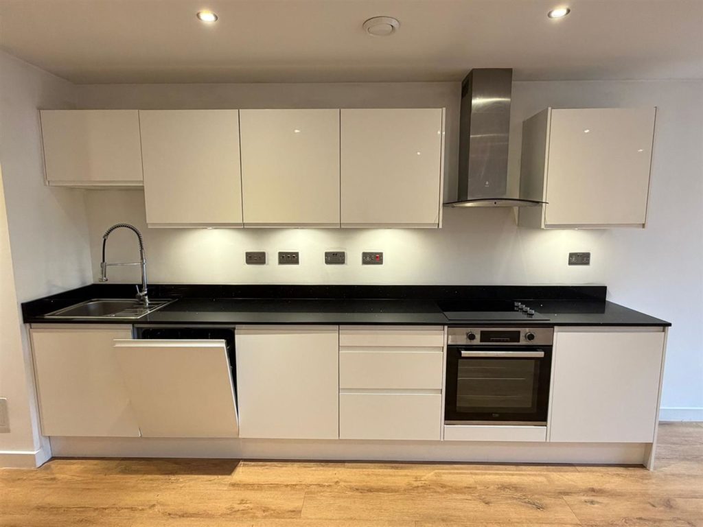 Exquisite ground floor one-bedroom, one bathroom apartment offers breath taking views of the surrounding Grade II listed park and gardens. FLAT 8 has an open-plan kitchen, dining, and living area and benefits from it's own terrace. The contemporary kitchen features Quartz worktops, integrated appliances and sleek handleless cupboards. The main living area has luxurious Sicilian Oak engineered wood flooring, while the bathroom is a sanctuary of style with porcelain tiles, bath tub and heated towel rail. The bedroom is generously sized and carpeted for comfort.Outside, enjoy your own terraced area surrounded by the beautifully maintained communal gardens and serene woodland. Allocated parking space and visitor parking.