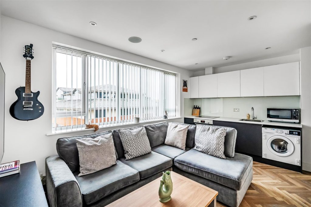 Conveniently located just a short walk from Leatherhead Train Station, this bright and airy 1 bedroom first floor apartment in Fountain House offers a great opportunity for first time buyers to get onto the property ladder. The accommodation feels almost new (built in 2021) and has been well looked after by the owner. It comprises of a welcoming entrance hall that has space for a desk, a double bedroom fitted with Hilarys electric blinds, separate wardrobe and a tastefully tiled shower room with W/C and vanity unit. The kitchen/sitting room features a large window with Hilarys fitted blinds with space for a corner sofa. The modern fitted kitchen features built in appliances including an oven and induction hob.Other features include Karndean wood effect parquet flooring, electric heaters controlled by the 'Adax app', built in bluetooth ceiling speaker in sitting room (Lithe Audio) and the seller has also recently redecorated. There is also an allocated parking space.