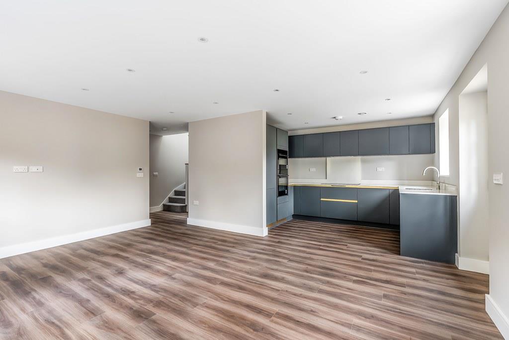 Located on this sought after private estate, this mid terrace brand new mews style home offers 1179 sq.ft. of space over 2 floors being just one of 4 new homes completed to a high standard by Gearing Developments. Ready for immediate occupation and offered with a 10 year Warranty from AHCI, this house comes with a two parking spaces (one with dedicated electric charging point). Features include oak veneered internal doors, double glazed units and gas fired water underfloor heating to both ground and first floors. The kitchen and bathrooms are beautifully appointed with quality appliances and sanitary ware.Outside to the front there is a lawned garden enclosed with ranch style fencing and an attractive outlook over adjoining Green Belt grazing land.