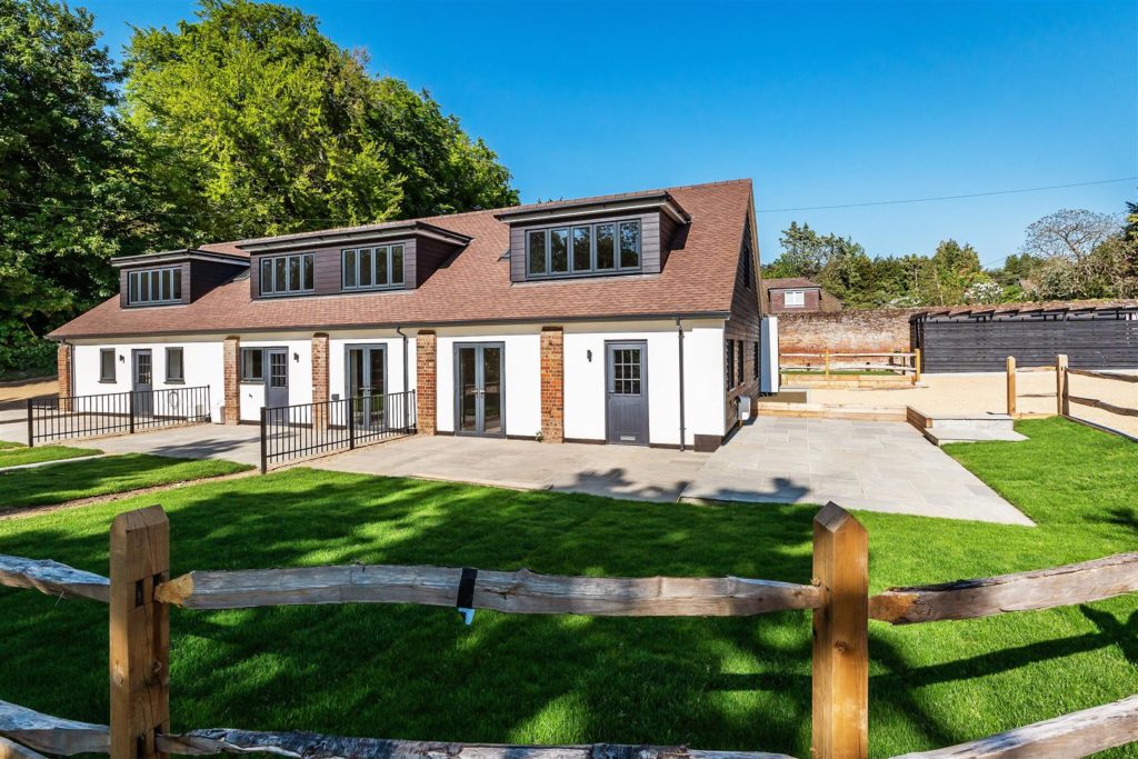 Located on this sought after private estate, this brand new, of terrace mews style home offers 1128 sq.ft. of accommodation over two floors, being just one of four new homes completed to a high standard by Gearing Developments. Features include oak veneered internal doors, double glazed units and gas fired water underfloor heating to both ground and first floors. The kitchen and bathrooms are beautifully appointed with quality appliances and sanitary ware. The home also comes with a two parking spaces (one with dedicated electric charging point).Outside to the front there a a lawned garden enclosed with ranch style fencing and an attractive outlook over adjoining Green Belt grazing land.