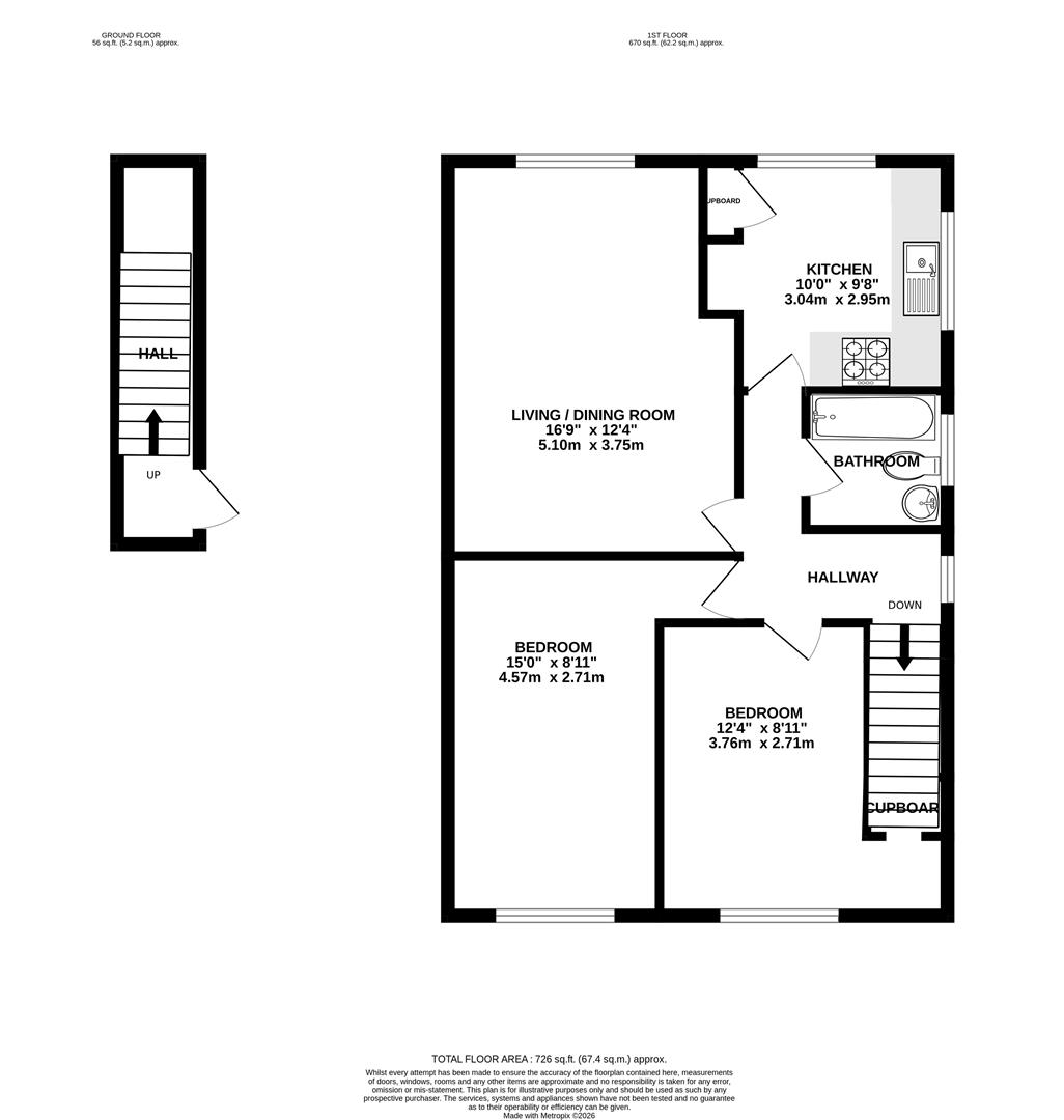 This first floor newly refurbished maisonette is ideally situated within minutes' walk of Bookham High Street and benefits from a private garden and a very long lease. There are two good sized bedrooms and ample storage in the loft space.The front door leads upstairs to a landing with access to the spacious partially boarded loft with a pull down ladder. There are two bedrooms, one large double and one smaller double with storage cupboards and an area which could easily be used as a study space. There is a bathroom comprising a white suite with wc, sink, bath and shower over.The kitchen is fitted with Shaker style units and wooden worktops with oven, four ring gas hob and a freestanding fridge freezer. The living room is a lovely room with a large window overlooking the garden.To the rear of the property a pathway takes you to a private garden with a shed, feature patio and mature trees and shrubs.