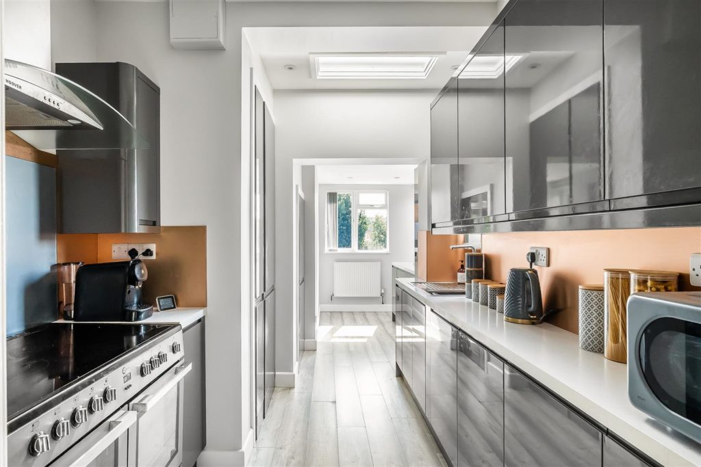 This beautifully presented 1930's semi-detached house offers 1195 sq.ft. of well appointed accommodation. The stylish accommodation includes a sitting room with fireplace, dining room with sliding doors out onto the terrace and modern double aspect kitchen with integrated appliances and door to the garden. Upstairs, there are two large double bedrooms, single bedroom (currently used as a study) and family bathroom with separate shower and bath. The rear garden has a terrace with steps down to the lawn with rear decking screened with wall and fencing.