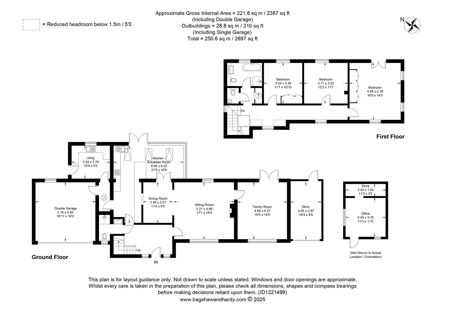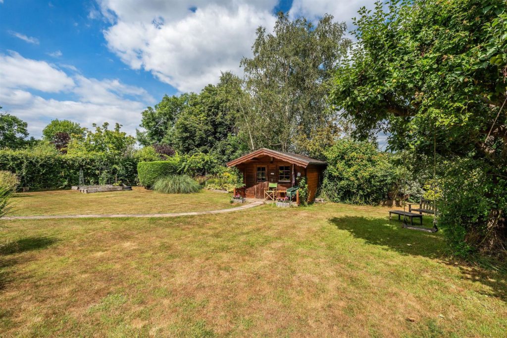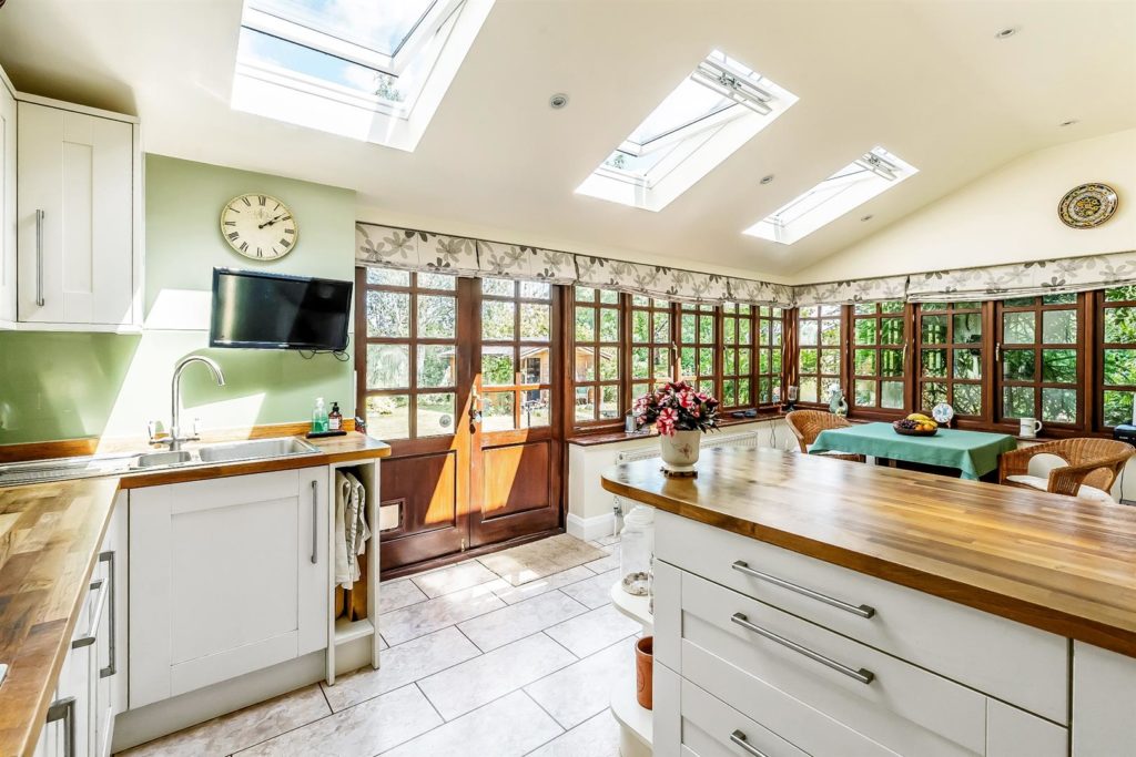 A rare opportunity to acquire this delightful detached house, tucked away in one of Bookham's most desirable private roads and sits on a third acre plot. Perfectly positioned, this charming home offers generous, well proportioned living space and tremendous potential for enhancement and extension (STPP)Step into a spacious entrance hallway with a welcoming flow, featuring a cloakroom and stairs to the first floor. The well-appointed kitchen opens into a fabulous, bright orangery, perfect as a breakfast room, while a separate dining room connects seamlessly to the living room for effortless entertaining. A further family room offers flexible space for relaxation or working from home, complemented by a utility room off the kitchen with internal access to the double garage, plus a further single garage.Upstairs, the principal bedroom features a Juliet balcony overlooking the gardens, creating a tranquil retreat. Two further double bedrooms, a family bathroom, and a separate cloakroom complete the first-floor accommodation, ensuring comfort for family living or guests.To the front, the property offers driveway parking with side access leading to the rear gardens. The gardens are very secluded, with mature borders providing privacy, and a summer house offering an ideal spot for relaxation or hobbies.
