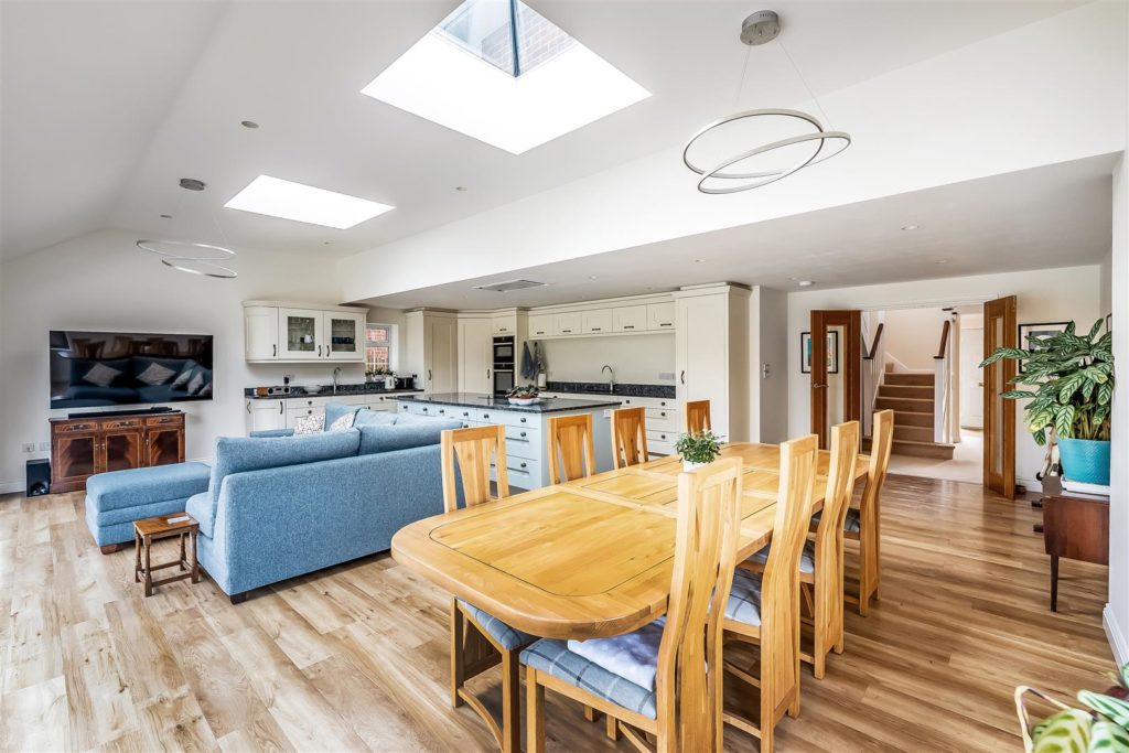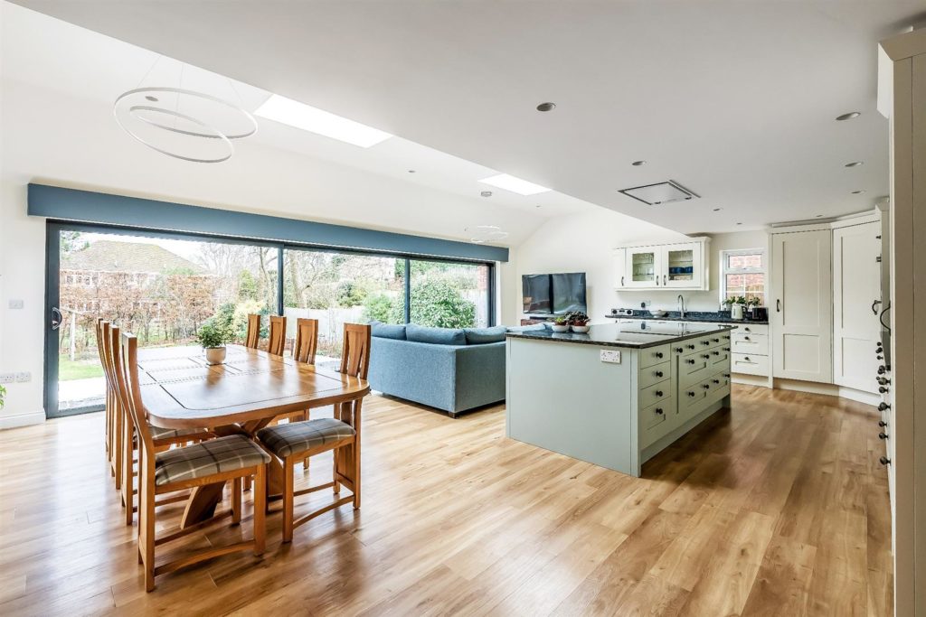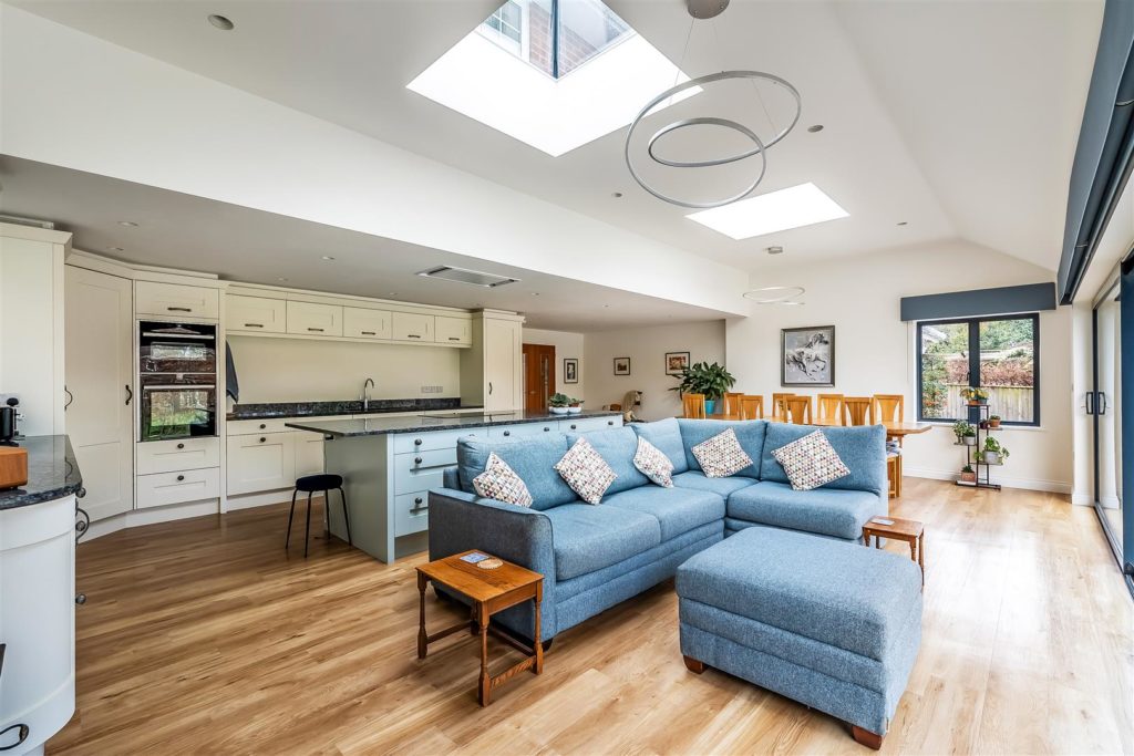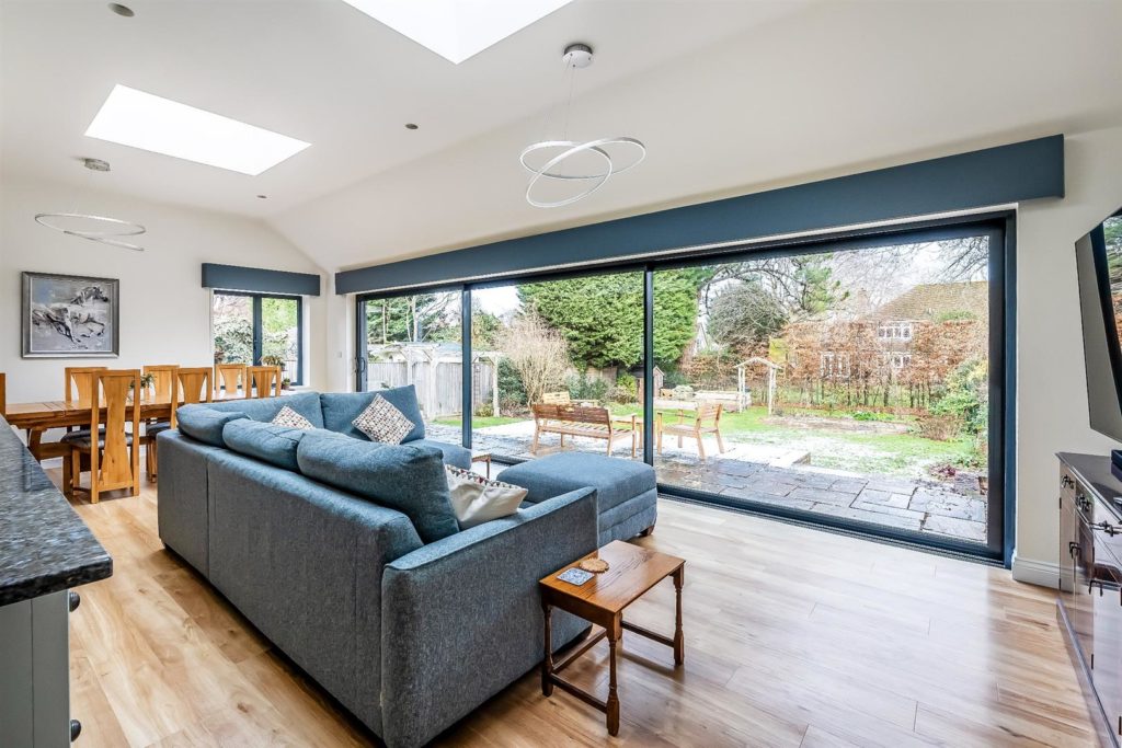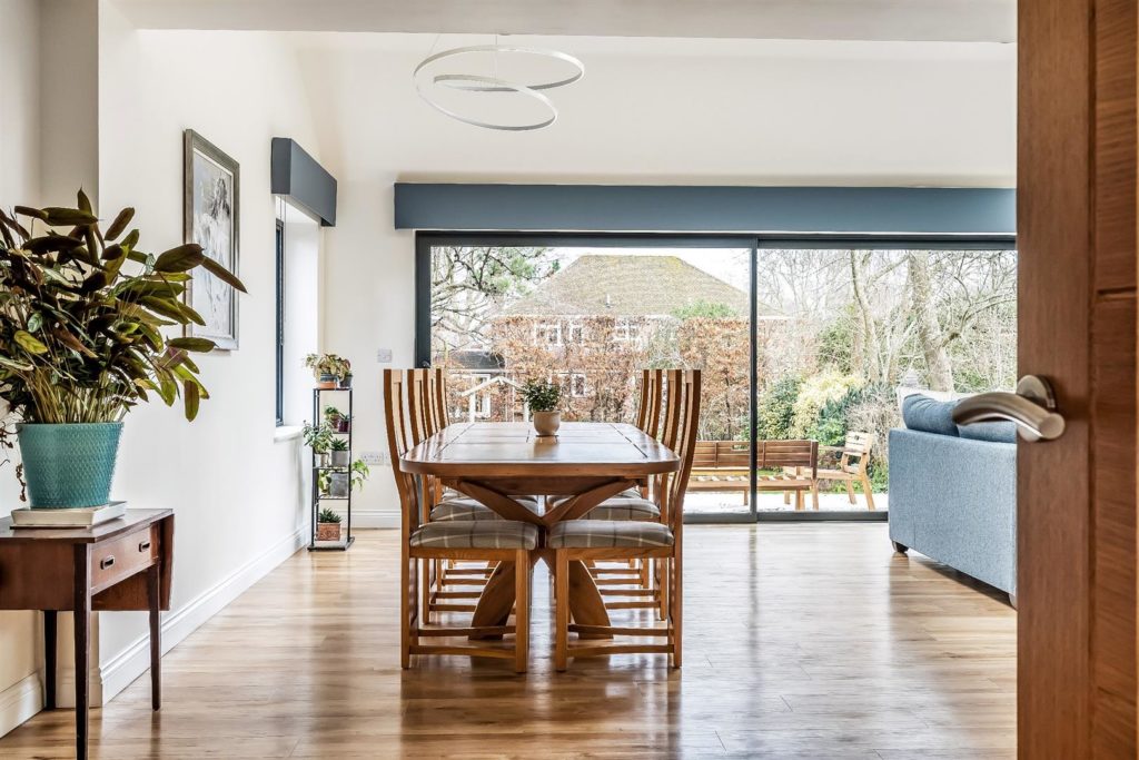 This detached family home is situated in a much sought after cul-de-sac within a short walk of Bookham village, Bookham station and the Common. The property features four bedrooms, two bathrooms and a wonderful open plan kitchen/dining/living space.As you walk through the front door you are welcomed into a spacious entrance hall with direct access to the garage and a downstairs cloakroom. Off the entrance hall are double doors leading to a modern kitchen/dining/living space with full width sliding doors and electric blinds. Additionally on the ground floor there is a study to the front, a separate sitting room with an electronically controlled fire and a utility room to the rear of the kitchen. On the landing there is an airing cupboard and access to the loft space. The principal bedroom benefits from fitted wardrobes and an en-suite bathroom. The three further bedrooms all contain built-in storage and are serviced by the family bathroom. To the front of the property there is a front lawn and driveway parking for several vehicles leading to the double garage with power and light. The garage also houses the processing unit for the solar panels. Gated side access leads to the rear garden. The garden measures approximately 78' x 52' and comprises a raised patio adjoining the rear of the house, lawn and mature shrubs and hedging borders.