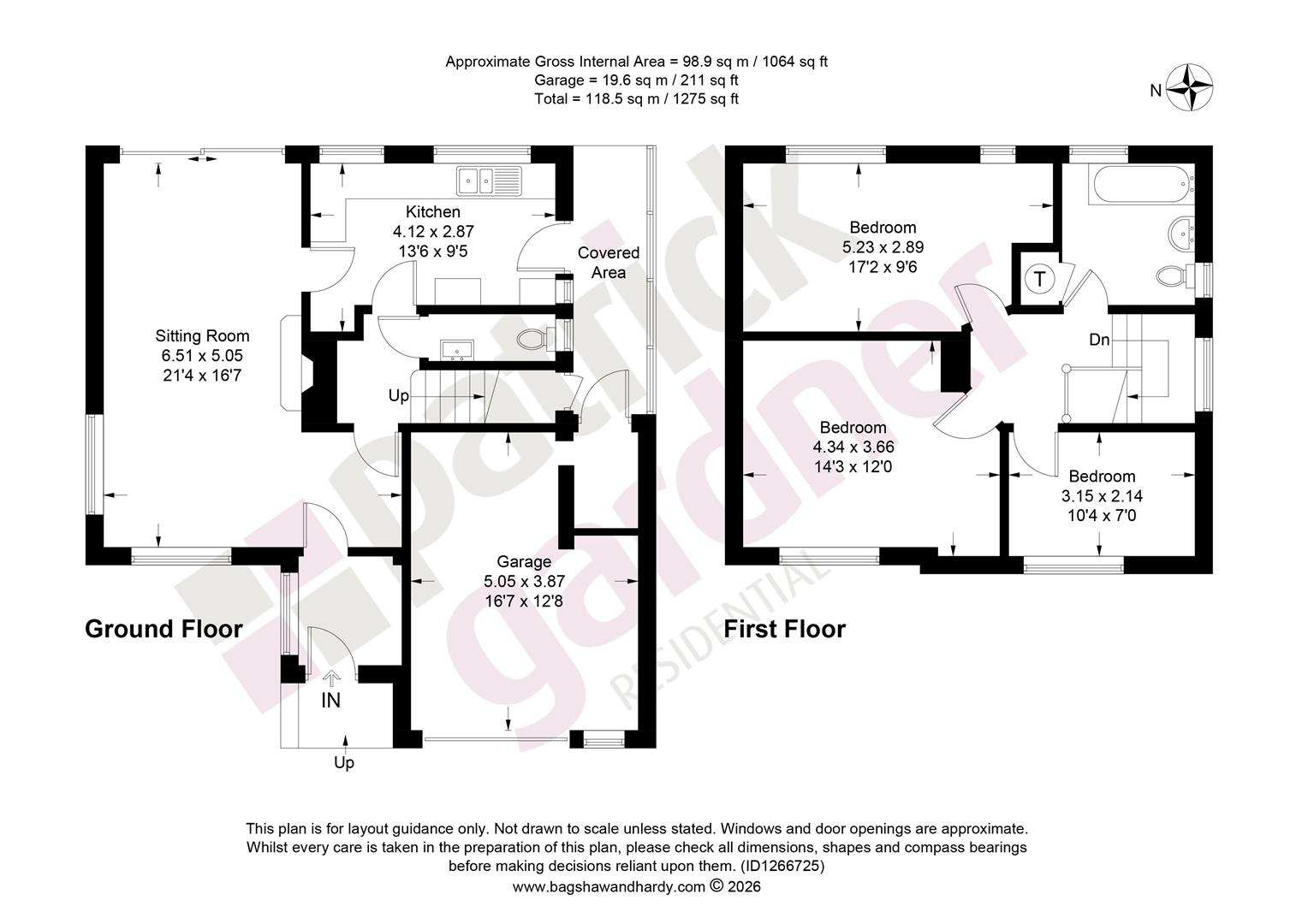 Situated at the head of a popular cul-de-sac location, within easy reach of the Howard of Effingham School is this three bedroom family home which benefits from a delightful rear garden and driveway parking.The front door opens into and enclosed entrance porch. There is a bright and spacious triple aspect living dining room with a gas coal effect fire and sliding patio doors out to the garden. The kitchen also overlooks the rear garden and offers ample storage, electric cooker, integrated slimline dishwasher and space for further appliances. A back door leads to an undercover passageway and a personal door to the garage. There is an inner hallway with a downstairs cloakroom off and stairs to the first floor.On the first floor there are three good sized bedrooms which are served by a family bathroom suite. There is loft access from within the bathroom with a pull down ladder, light and partial boarding.Outside there is a well maintained front garden and driveway parking leading to the garage; with an up and over door. Gated side access leads to the rear garden with a patio, lawn, garden shed and hedging borders. The garden measures approximately 44’ x 38’ and backs in an Easterly direction.