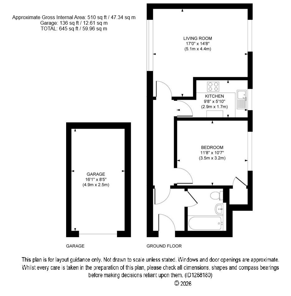 Built in 1984, and forming part of a quiet and peaceful development within easy reach of local village shops, schools and amenities nearby is this well-proportioned ground floor apartment which would suit both first-time buyers and investors alike. The accommodation includes:- From a communal front door with entry phone to one's own front door and an entrance hall, a spacious bright double-aspect living room with ample room for seating and a dining table, a fitted kitchen with a good range of matching wall and base units and ample work surfaces for preparation, space for integrated and free standing units., a bathroom suite , and a good sized double bedroom.Outside the property benefits from pleasant communal gardens to enjoy and a garage within the block.Service charge (2025): £2,132.83Ground rent: £100 per annumLease: 189 years from 25 March 1984