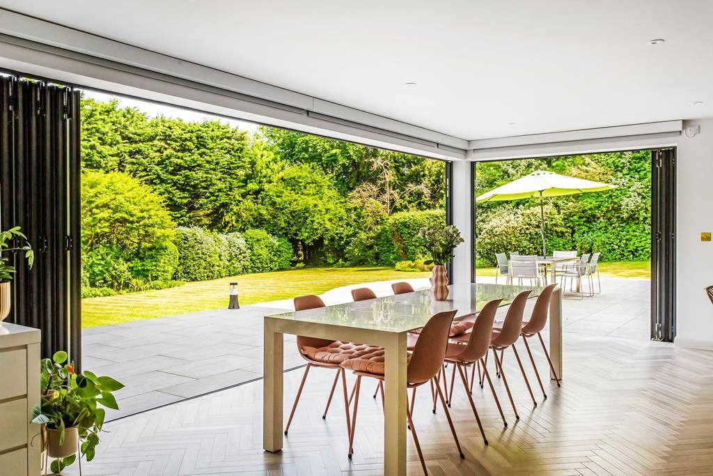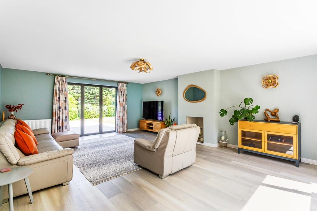 Set on a lovely wide plot of just under 1 ACRE, this bright and airy 5 DOUBLE BEDROOM contemporary styled home offers over 3,750 sq.ft. (plus garage) of remodelled modernised space. The accommodation layout has been carefully planned; all the rooms are spacious. The 'hub' of the home features a superb open plan kitchen/dining family room which has double aspect bifold doors onto a fantastic terrace - ideal for 'al fresco' dining. The principal bedroom features a large walk-in wardrobe space complemented by a luxurious ensuite bathroom whilst the 4 remaining bedrooms are served by a further ensuite and family bathroom.