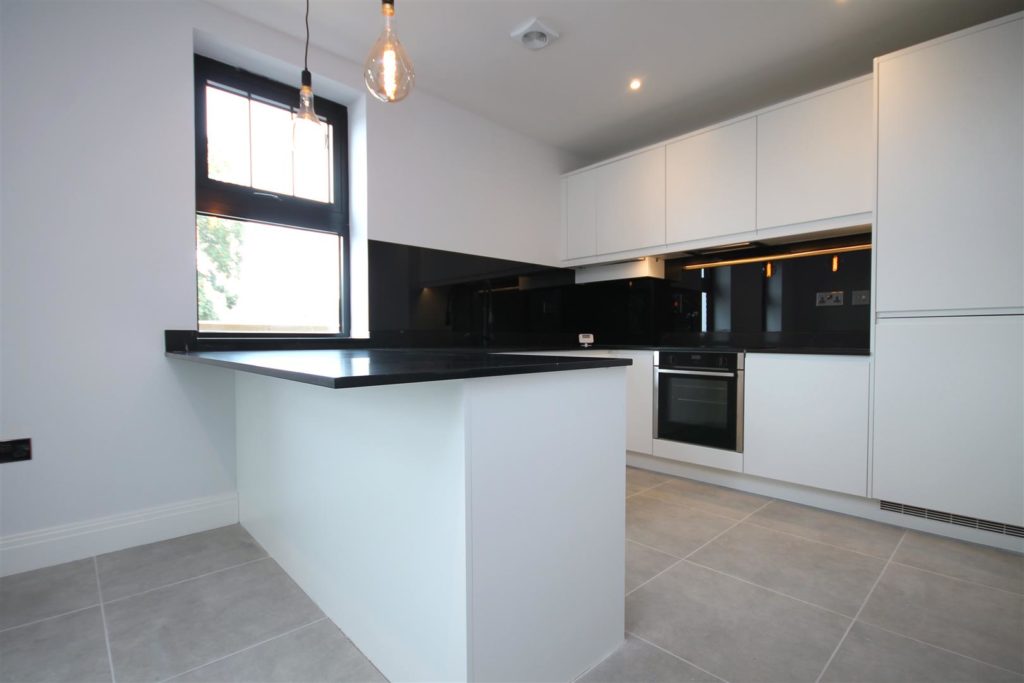 A wonderful light entertaining space with a wall of bi-fold doors opening onto a Juliet balcony and two large windows in the kitchen. There is ample space for a large dining table and chairs and a seating arrangement. With fabulous views over neighbouring roof tops.