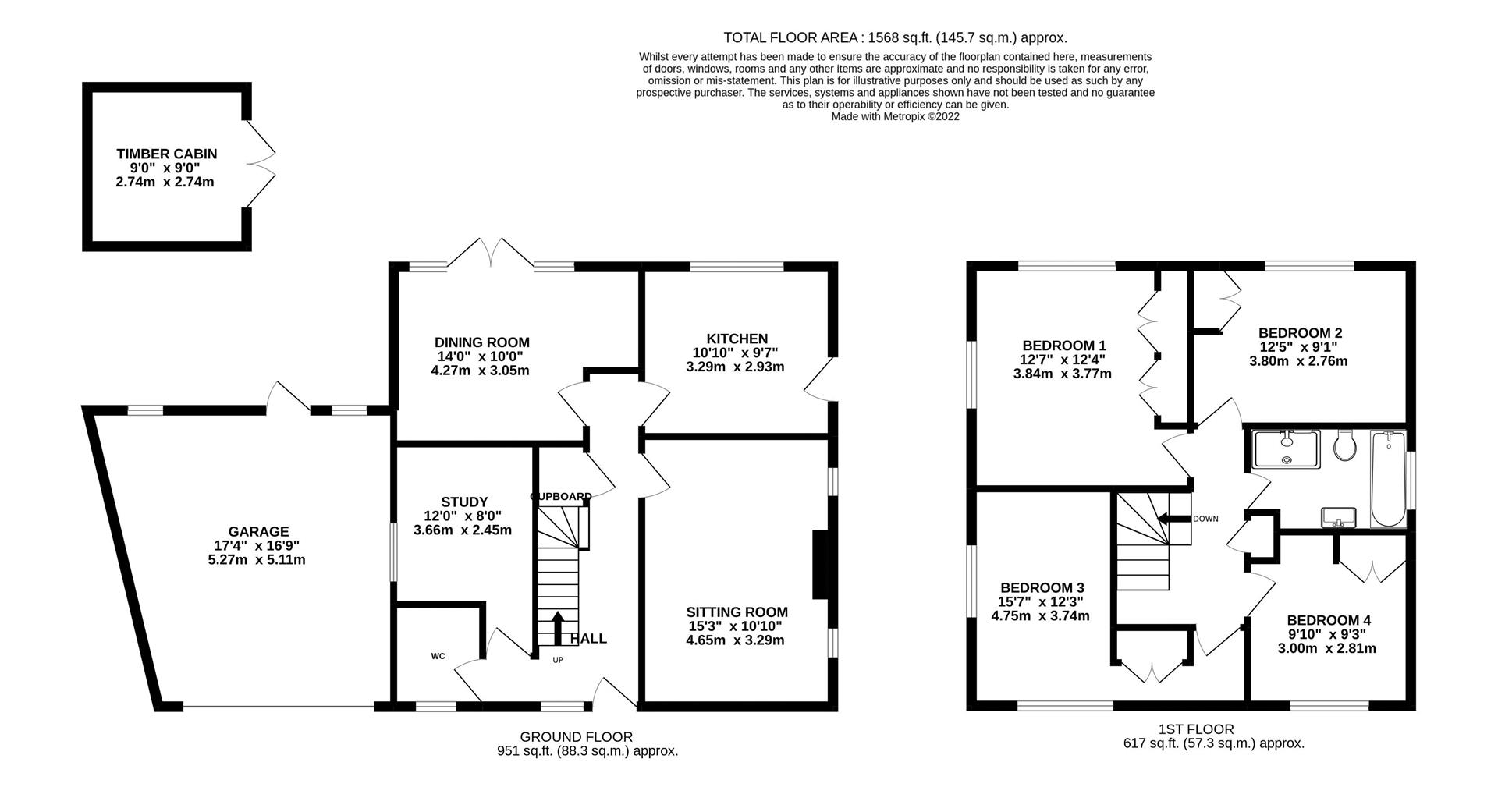 This delightful 4 DOUBLE BEDROOM family house offers modern, bright and spacious accommodation on a level 0.17 ACRE plot in a residential CUL-DE-SAC close to local schools and mainline railway station. 1568 sq.ft.incl.gge & cabin - NO CHAIN